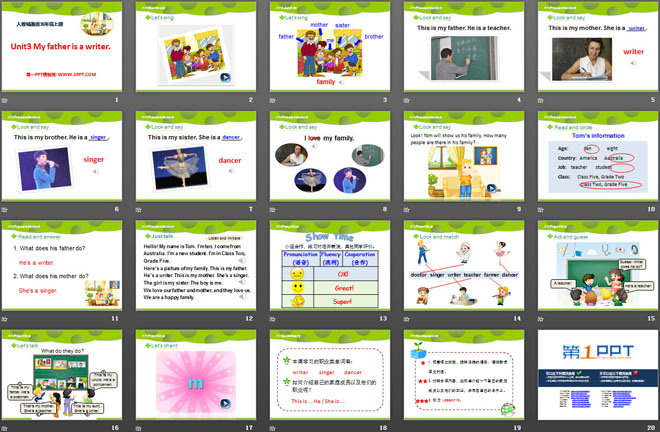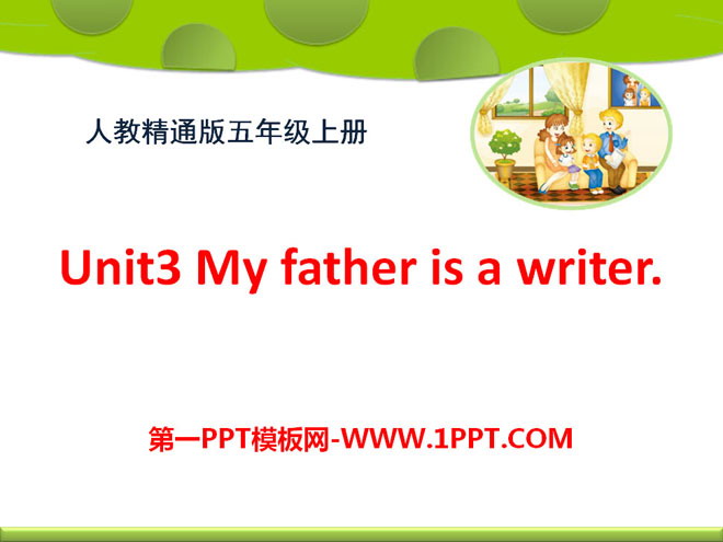 关键词:《My father is a writer》教学课件,人教精通版五年级上册英语PPT课件下载,五年级英语幻灯片课件下载,《My father is a writer》PPT课件下载,.PPT格式;