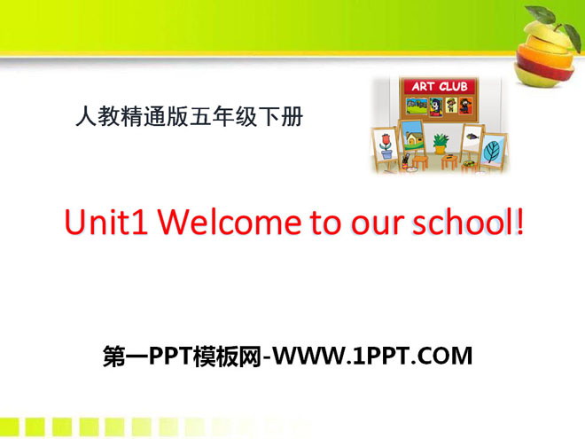 关键词:《Welcome to our school》教学课件,人教精通版五年级下册英语PPT课件下载,五年级英语幻灯片课件下载,《Welcome to our school》PPT课件下载,.PPT格式;