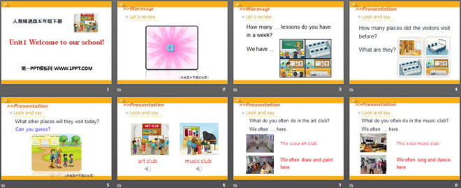 关键词:《Welcome to our school》教学课件,人教精通版五年级下册英语PPT课件下载,五年级英语幻灯片课件下载,《Welcome to our school》PPT课件下载,.PPT格式;