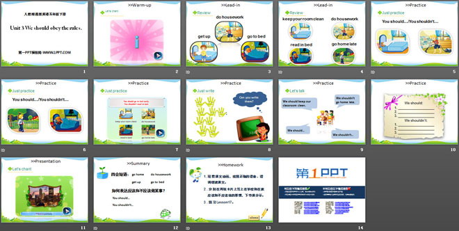 关键词:《We should obey the rules》教学课件,人教精通版五年级下册英语PPT课件下载,五年级英语幻灯片课件下载,《We should obey the rules》PPT课件下载,.PPT格式;
