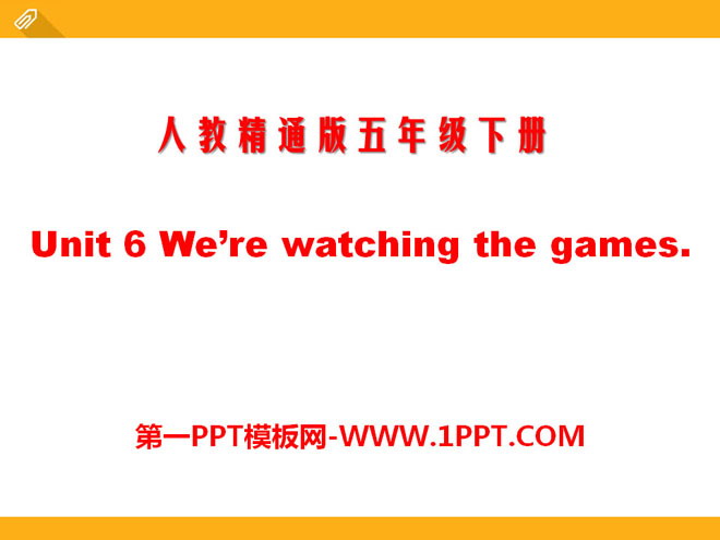 关键词:《We're watching the games》教学课件,人教精通版五年级下册英语PPT课件下载,五年级英语幻灯片课件下载,《We're watching the games》PPT课件下载,.PPT格式;