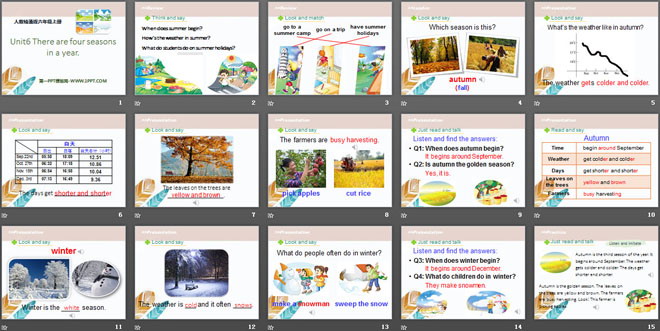 关键词:《There are four seasons in a year》教学课件,人教精通版六年级上册英语PPT课件下载,六年级英语幻灯片课件下载,《There are four seasons in a year》PPT课件下载,.PPT格式;
