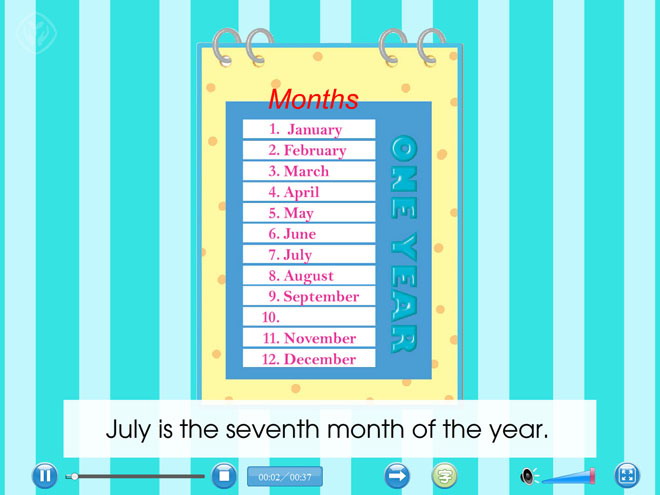 关键词:《July is the seventh month》教学课件,人教精通版六年级上册英语Flash动画课件下载,六年级英语动画课件下载,《July is the seventh month》Flash课件下载,.SWF格式;