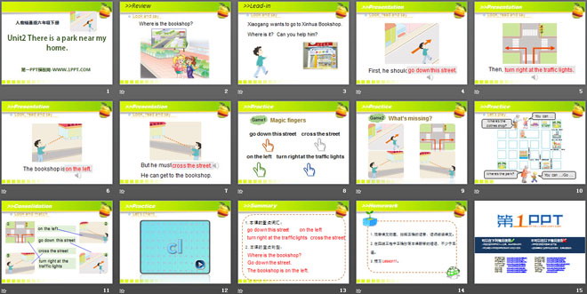 关键词:《There is a park near my home》教学课件,人教精通版六年级下册英语PPT课件下载,六年级英语幻灯片课件下载,《There is a park near my home》PPT课件下载,.PPT格式;