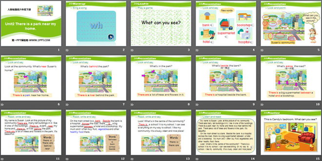 关键词:《There is a park near my home》教学课件,人教精通版六年级下册英语PPT课件下载,六年级英语幻灯片课件下载,《There is a park near my home》PPT课件下载,.PPT格式;