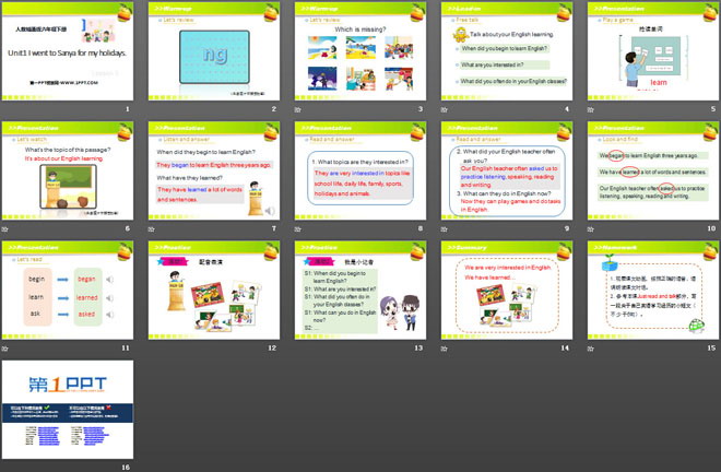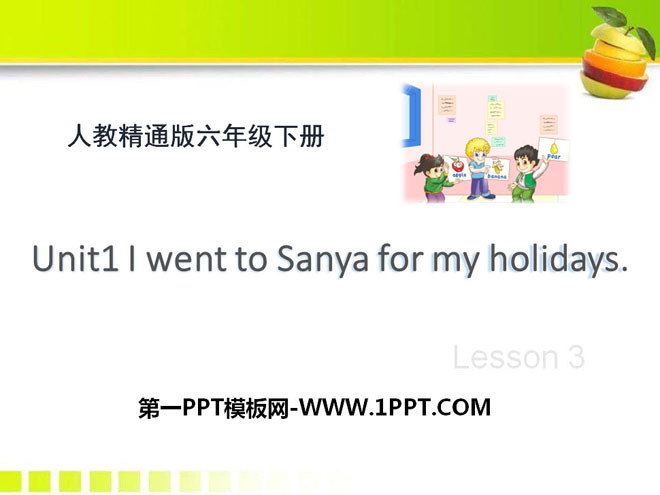 关键词:《I went to Sanya for my holidays》教学课件,人教精通版六年级下册英语PPT课件下载,六年级英语幻灯片课件下载,《I went to Sanya for my holidays》PPT课件下载,.PPT格式;