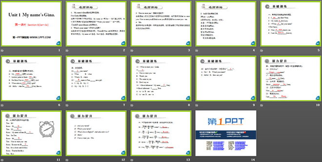 关键词:《My name's Gina》教学课件,人教新目标版七年级上册英语PPT课件下载,七年级英语幻灯片课件下载,《My name's Gina》PPT课件下载,.PPT格式;
