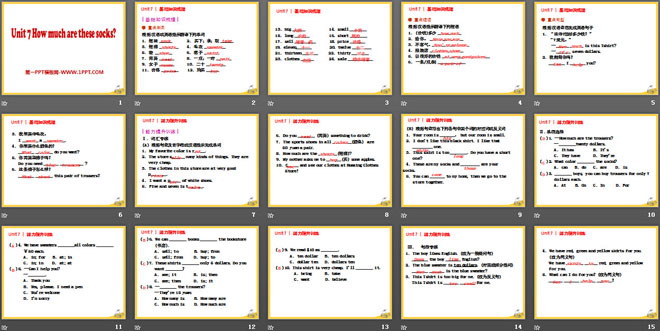 关键词:《How much are these socks?》教学课件,人教新目标版七年级上册英语PPT课件下载,七年级英语幻灯片课件下载,《How much are these socks?》PPT课件下载,.PPT格式;