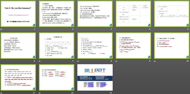 关键词:《Do you like bananas?》教学课件,人教新目标版七年级上册英语PPT课件下载,七年级英语幻灯片课件下载,《Do you like bananas?》PPT课件下载,.PPT格式;
