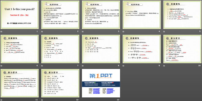 关键词:《Is this your pencil?》教学课件,人教新目标版七年级上册英语PPT课件下载,七年级英语幻灯片课件下载,《Is this your pencil?》PPT课件下载,.PPT格式;