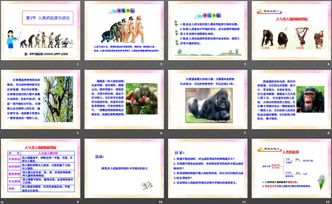 关键词:北师大版八年级下册生物PPT课件免费下载,人类的起源和进化PPT下载,.PPT格式;