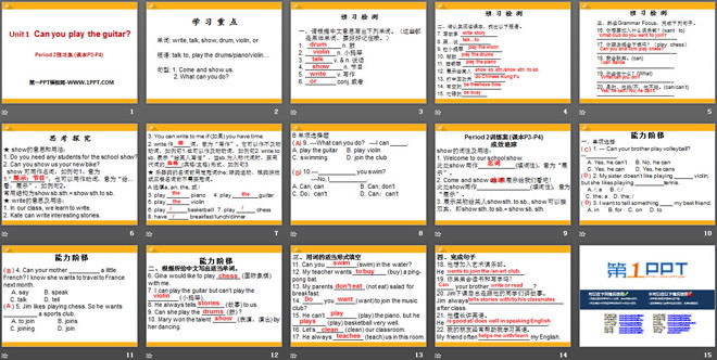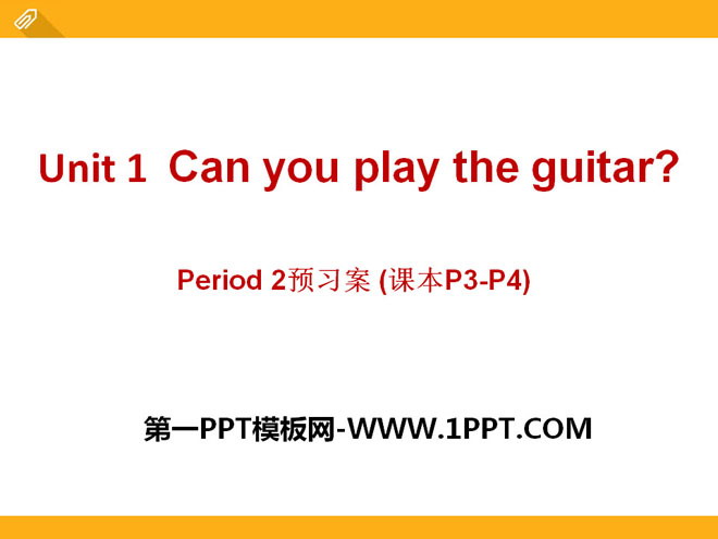 关键词:《Can you play the guitar?》教学课件,人教新目标版七年级下册英语PPT课件下载,七年级英语幻灯片课件下载,《Can you play the guitar?》PPT课件下载,.PPT格式;
