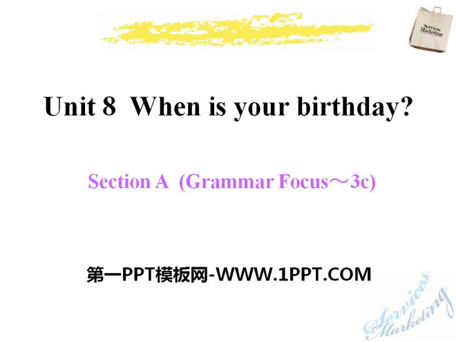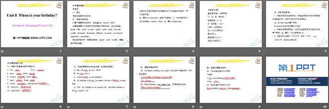 关键词:《When is your birthday?》教学课件,人教新目标版七年级上册英语PPT课件下载,七年级英语幻灯片课件下载,《When is your birthday?》PPT课件下载,.PPT格式;