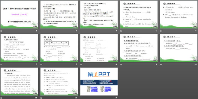关键词:《How much are these socks?》教学课件,人教新目标版七年级上册英语PPT课件下载,七年级英语幻灯片课件下载,《How much are these socks?》PPT课件下载,.PPT格式;