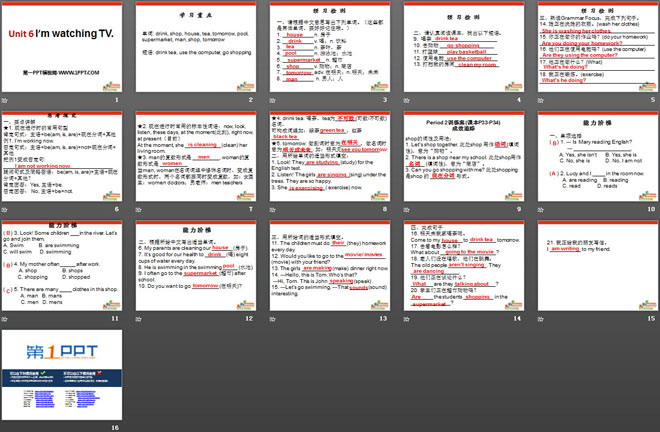 关键词:《I'm watching TV》教学课件,人教新目标版七年级下册英语PPT课件下载,七年级英语幻灯片课件下载,《I'm watching TV》PPT课件下载,.PPT格式;