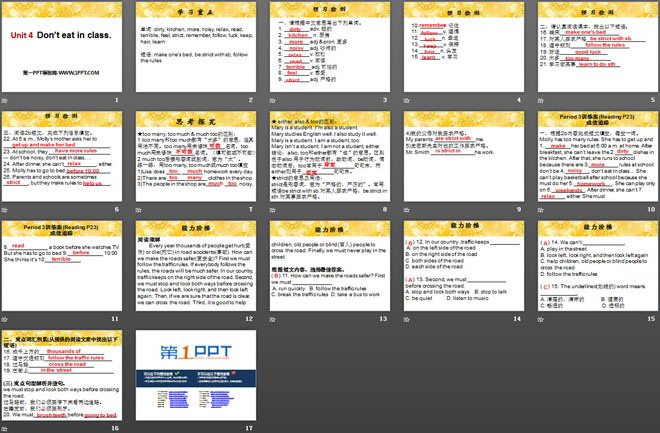 关键词:《Don't eat in class》教学课件,人教新目标版七年级下册英语PPT课件下载,七年级英语幻灯片课件下载,《Don't eat in class》PPT课件下载,.PPT格式;