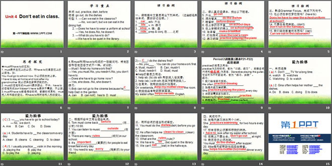 关键词:《Don't eat in class》教学课件,人教新目标版七年级下册英语PPT课件下载,七年级英语幻灯片课件下载,《Don't eat in class》PPT课件下载,.PPT格式;