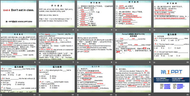 关键词:《Don't eat in class》教学课件,人教新目标版七年级下册英语PPT课件下载,七年级英语幻灯片课件下载,《Don't eat in class》PPT课件下载,.PPT格式;