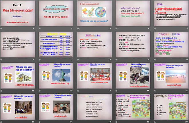 关键词:《Where did you go on vacation?》教学课件,人教新目标版八年级上册英语PPT课件下载,八年级英语幻灯片课件下载,《Where did you go on vacation?》PPT课件下载,.PPT格式;