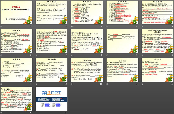 关键词:《What did you do last weekend?》教学课件,人教新目标版七年级下册英语PPT课件下载,七年级英语幻灯片课件下载,《What did you do last weekend?》PPT课件下载,.PPT格式;