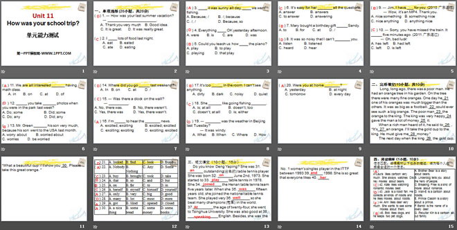 关键词:《How was your school trip?》教学课件,人教新目标版七年级下册英语PPT课件下载,七年级英语幻灯片课件下载,《How was your school trip?》PPT课件下载,.PPT格式;
