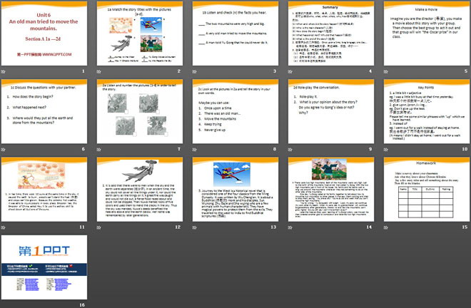 关键词:《An old man tried to move the mountains》教学课件,人教新目标版八年级下册英语PPT课件下载,八年级英语幻灯片课件下载,《An old man tried to move the mountains》PPT课件下载,.PPT格式;