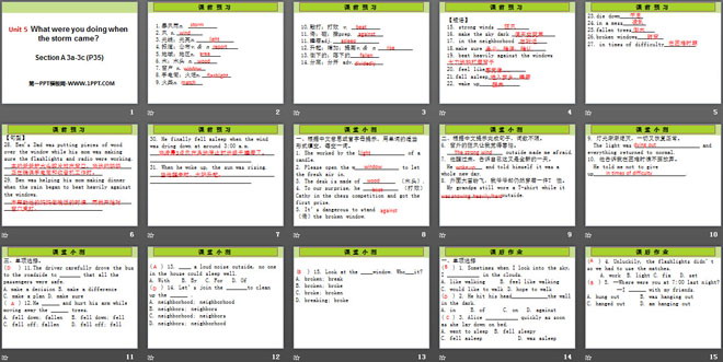 关键词:《What were you doing when the rainstorm came?》教学课件,人教新目标版八年级下册英语PPT课件下载,八年级英语幻灯片课件下载,《What were you doing when the rainstorm came?》PPT课件下载,.PPT格式;