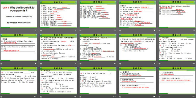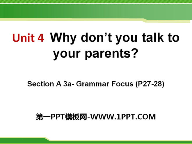 关键词:《Why don't you talk to your parents?》教学课件,人教新目标版八年级下册英语PPT课件下载,八年级英语幻灯片课件下载,《Why don't you talk to your parents?》PPT课件下载,.PPT格式;
