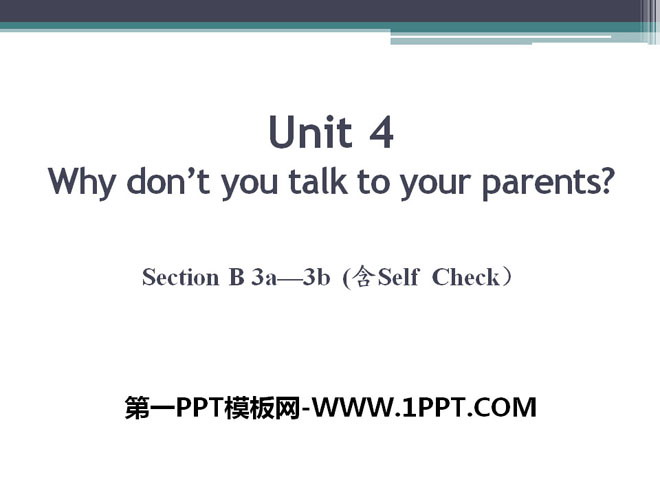 关键词:《Why don't you talk to your parents?》教学课件,人教新目标版八年级下册英语PPT课件下载,八年级英语幻灯片课件下载,《Why don't you talk to your parents?》PPT课件下载,.PPT格式;