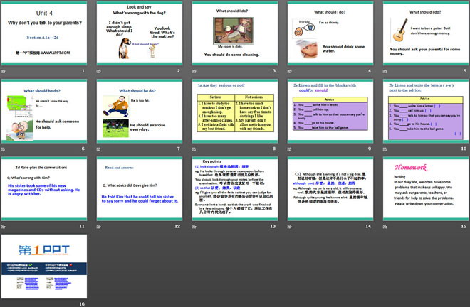 关键词:《Why don't you talk to your parents?》教学课件,人教新目标版八年级下册英语PPT课件下载,八年级英语幻灯片课件下载,《Why don't you talk to your parents?》PPT课件下载,.PPT格式;