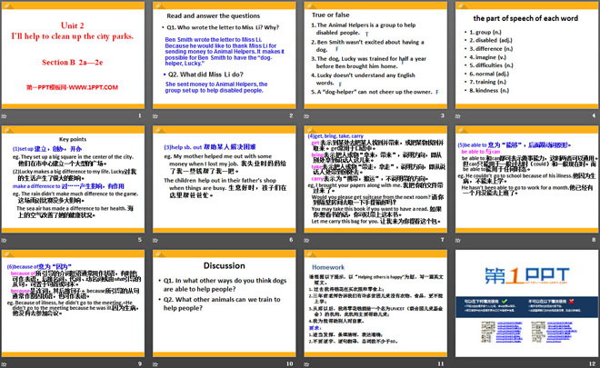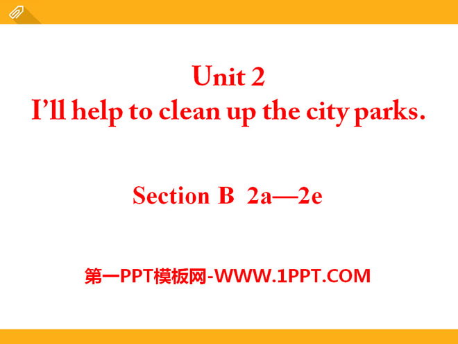 关键词:《I'll help to clean up the city parks》教学课件,人教新目标版八年级下册英语PPT课件下载,八年级英语幻灯片课件下载,《I'll help to clean up the city parks》PPT课件下载,.PPT格式;