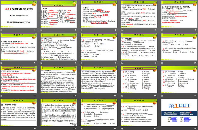 关键词:《What's the matter?》教学课件,人教新目标版八年级下册英语PPT课件下载,八年级英语幻灯片课件下载,《What's the matter?》PPT课件下载,.PPT格式;
