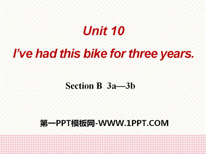 关键词:《I've had this bike for three years》教学课件,人教新目标版八年级下册英语PPT课件下载,八年级英语幻灯片课件下载,《I've had this bike for three years》PPT课件下载,.PPT格式;