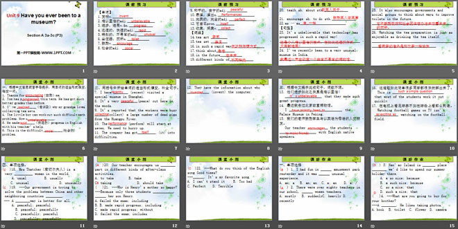 关键词:《Have you ever been to a museum?》教学课件,人教新目标版八年级下册英语PPT课件下载,八年级英语幻灯片课件下载,《Have you ever been to a museum?》PPT课件下载,.PPT格式;