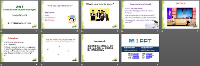 关键词:《Have you read Treasure Island yet?》教学课件,人教新目标版八年级下册英语PPT课件下载,八年级英语幻灯片课件下载,《Have you read Treasure Island yet?》PPT课件下载,.PPT格式;