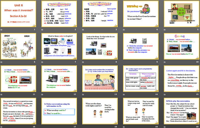 关键词:《When was it invented?》教学课件,人教新目标版九年级全一册英语PPT课件下载,九年级英语幻灯片课件下载,《When was it invented?》PPT课件下载,.PPT格式;