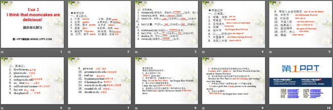 关键词:《I think that mooncakes are delicious!》教学课件,人教新目标版九年级全一册英语PPT课件下载,九年级英语幻灯片课件下载,《I think that mooncakes are delicious!》PPT课件下载,.PPT格式;