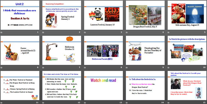 关键词:《I think that mooncakes are delicious!》教学课件,人教新目标版九年级全一册英语PPT课件下载,九年级英语幻灯片课件下载,《I think that mooncakes are delicious!》PPT课件下载,.PPT格式;