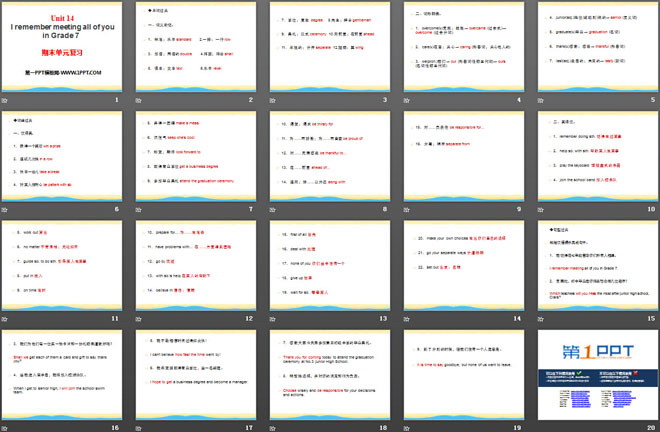 关键词:《I remember meeting all of you in Grade 7》教学课件,人教新目标版九年级全一册英语PPT课件下载,九年级英语幻灯片课件下载,《I remember meeting all of you in Grade 7》PPT课件下载,.PPT格式;