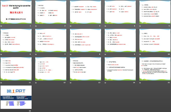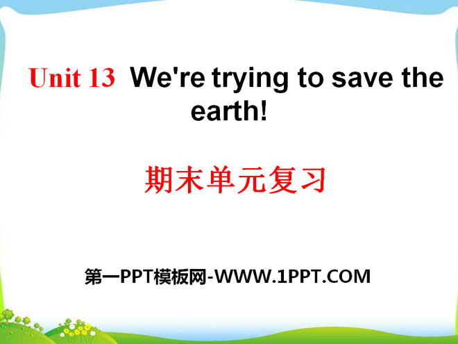 关键词:《We're trying to save the earth!》教学课件,人教新目标版九年级全一册英语PPT课件下载,九年级英语幻灯片课件下载,《We're trying to save the earth!》PPT课件下载,.PPT格式;