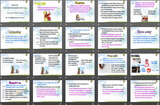 关键词:《Sad movies make me cry》教学课件,人教新目标版九年级全一册英语PPT课件下载,九年级英语幻灯片课件下载,《Sad movies make me cry》PPT课件下载,.PPT格式;