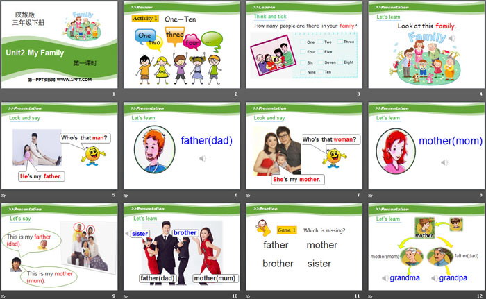 关键词:陕旅版三年级下册英语PPT课件免费下载,《My Family》PPT下载,.PPT格式;