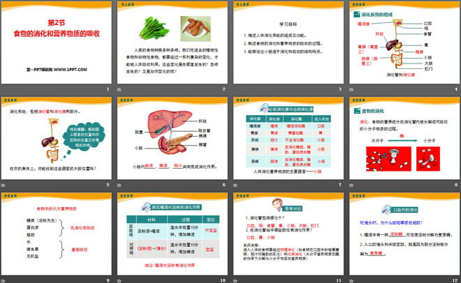 关键词:北师大版七年级下册生物PPT课件免费下载,食物的消化和营养物质的吸收PPT下载,.PPT格式;