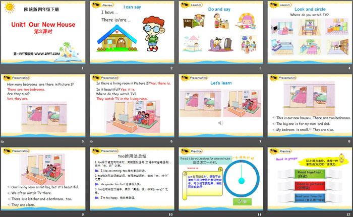 关键词:陕旅版四年级下册英语PPT课件免费下载,《Our New House》PPT下载,.PPT格式;