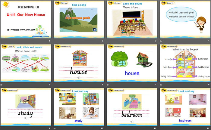 关键词:陕旅版四年级下册英语PPT课件免费下载,《Our New House》PPT下载,.PPT格式;