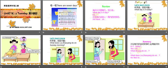《It's Tuesday》PPT,第二部分内容:Let’s learn more