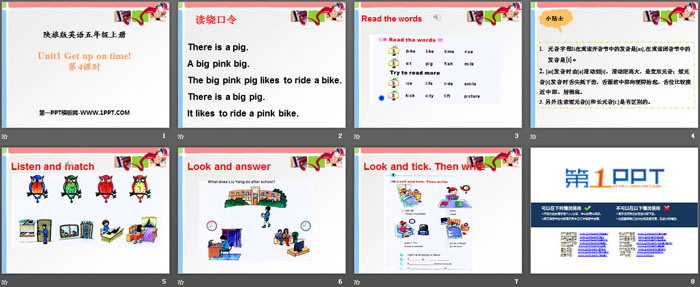 关键词:陕旅版五年级上册英语PPT课件免费下载,《Get Up on Time》PPT下载,.PPT格式;