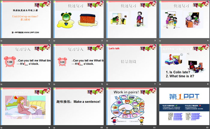 关键词:陕旅版五年级上册英语PPT课件免费下载,《Get Up on Time》PPT下载,.PPT格式;