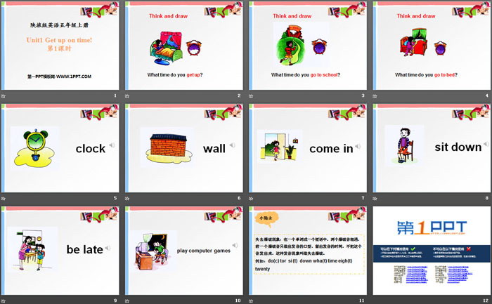 关键词:陕旅版五年级上册英语PPT课件免费下载,《Get Up on Time》PPT下载,.PPT格式;