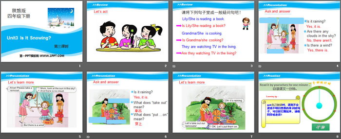 关键词:陕旅版四年级下册英语PPT课件免费下载,《Is It Snowing?》PPT下载,.PPT格式;